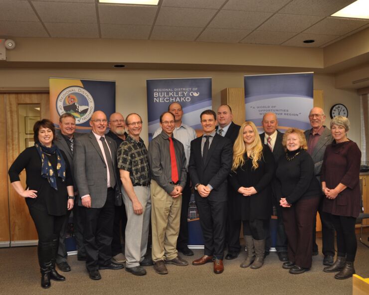 Left - Right (back) S. Hartwell, Village of Telkwa, J. Petersen, Area F, S. Smith, District of Houston, C. Farrow, Town of Smithers, R. MacDougall, District of Fort St. James, J. Penninga, Area A, L. Fox, District of Vanderhoof, R. Roy, Area D, R. Bisanz, Village of Fraser Lake, C. Beck, Area C.